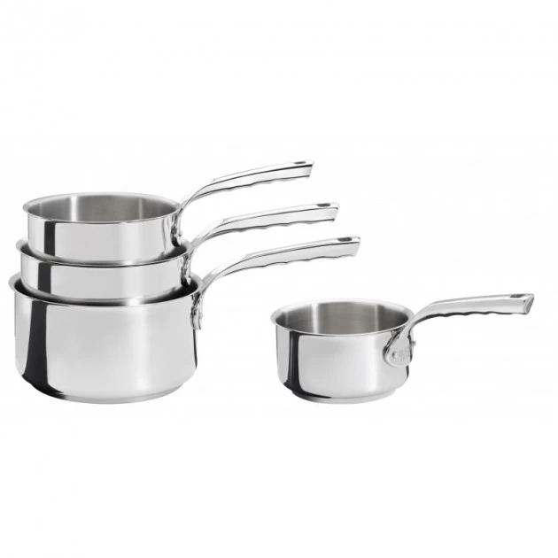 La Batterie Cuisine Inox Milady De Buyer répondra aux exigences des professionnels et des particuliers en quête d’ustensiles robustes et élégants. Dotée d’une finition brillante, la batterie de cuisine se compose de 4 casseroles dont le diamètre extérieur va de 14 à 20 cm. Sauce, cuisson à l’anglaise : vous aurez la casserole inox adaptée à chaque préparation !