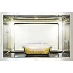 La boîte hermétique en verre peut s’utiliser de diverses manières : au four (sans le couvercle), au congélateur, au réfrigérateur et au micro-ondes (avec la valve vapeur ouverte). Également compatible avec le lave-vaisselle, il vous faudra néanmoins nettoyer le couvercle et le joint silicone à la main avec une éponge humide pour ne pas qu’ils ne s’abîment avec la chaleur.