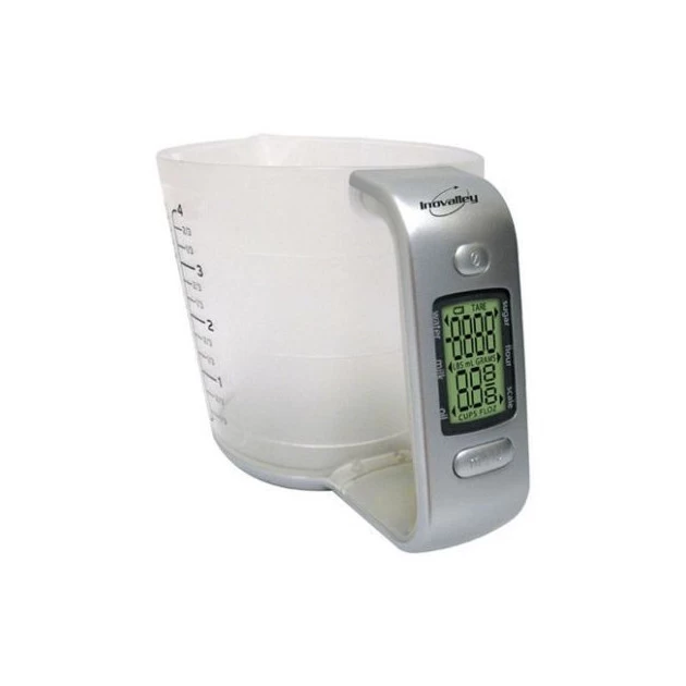 - Mesure en gramme (g) et millilitre (ml). Affichage sur la poignée à cristaux liquide