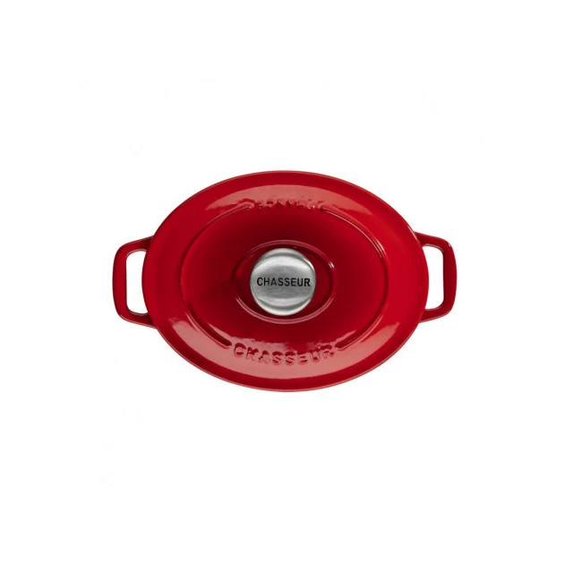 Mijotez de tendres petits plats à l’aide de la cocotte en fonte ovale de 17 cm Chasseur. Composé de fonte émaillée, cet indispensable de la cuisine est robuste et fabriqué entièrement en France. Son couvercle strié également en fonte et ses deux anses vous assurent un service impeccable, tandis que sa couleur rubis (rouge) apportera une touche de couleur à votre cuisine et soulignera celle de vos ingrédients.