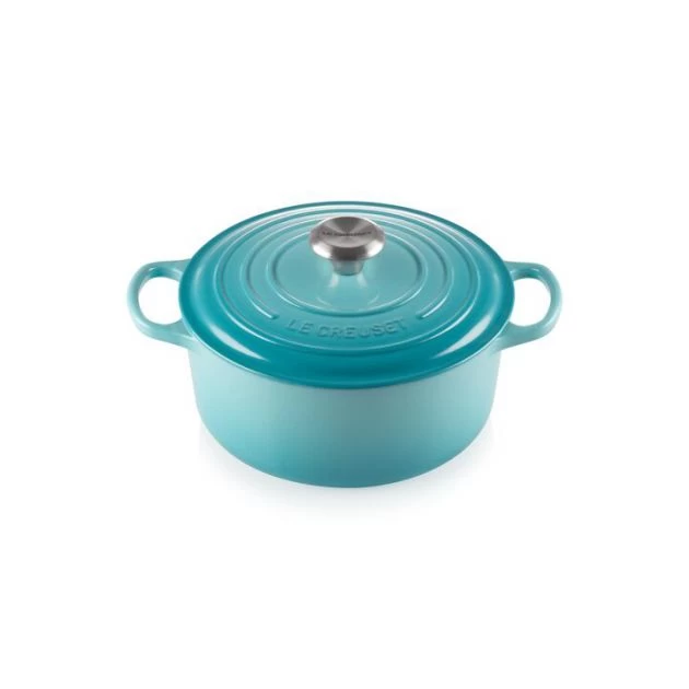 Moderne, la cocotte en fonte Le Creuset possède une belle couleur bleue rappelant l’eau de la mer des Caraïbes ! Procurez-vous dès à présent cette belle Cocotte en fonte Ronde 24 cm Caraïbes Le Creuset Signature, garantie à vie !