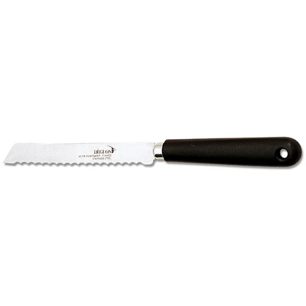 La lame du Couteau à Tomate de la marque Déglon est en acier inoxydable. La lame a été conçu spécialement pour la découpe de fruits et légumes mous.
