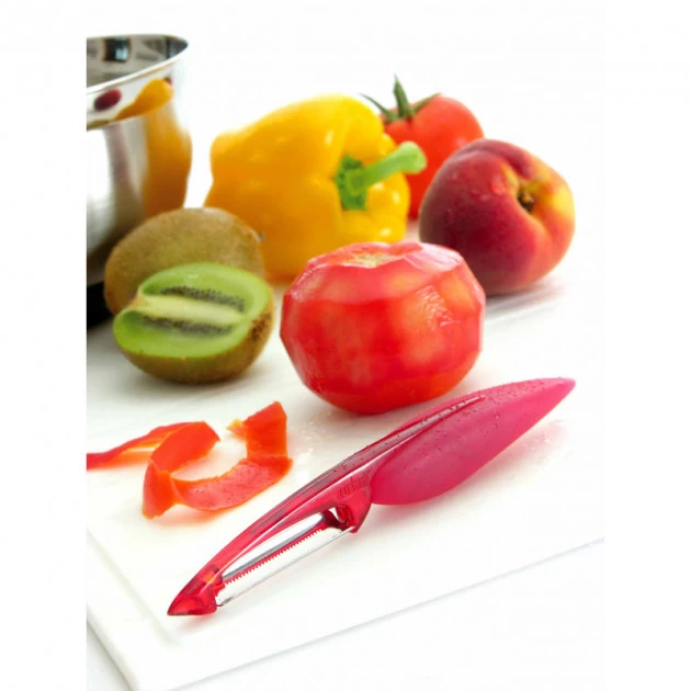 L’éplucheur Peaux fines et délicates Elios est l’outil idéal pour peler les kiwis, les tomates, les pêches, les poivrons, etc… grâce à sa lame dentelée.