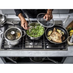 Performant et pratique, le faitout KitchenAid et son couvercle en verre trempé permettent une cuisson homogène, rapide et contrôlée en raison du corps en aluminium du faitout et des bords scellés. Traité anti-écaillage, le revêtement du faitout inox 24cm est composé de 3 couches anti-adhésives. Doté de la technologie Evershine, l’inox de qualité professionnelle gardera son éclat des premiers jours car résistant à la décoloration thermique.