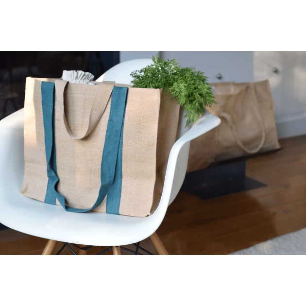 Son design naturel en fibre de jute ainsi que ses longues anses en coton bio tissé couleur bleu jean, apportent une touche tendance à ce sac cabas. Avec ses dimensions de 41 cm de long, 20 cm de large et sa hauteur de 35 cm ce grand sac sera le compagnon parfait pour tous types d’activités.