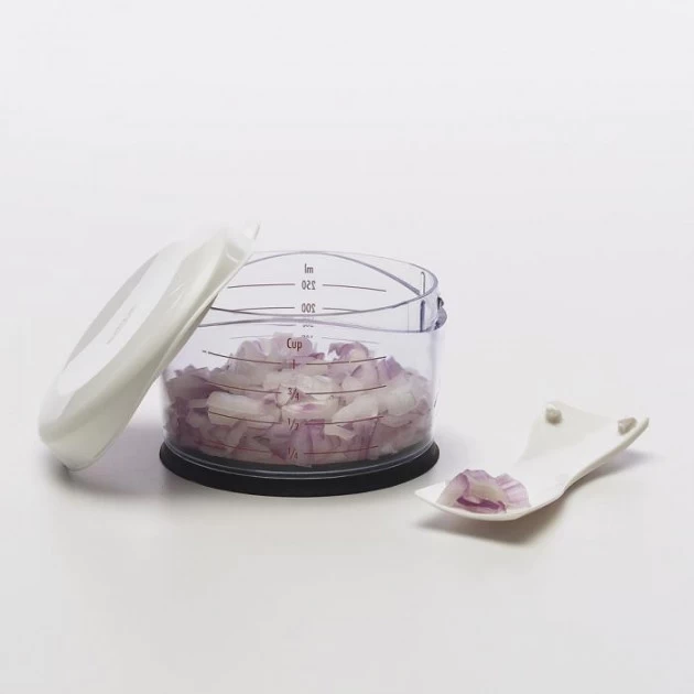 Le Hachoir Good Grips Oxo est très pratique pour hacher les oignons, les Ă©chalotes, les herbes, les noix etc. Grâce Ă son rĂ©cipient graduĂ©, il vous sera facile de mesurer les quantitĂ©s d’aliments.Â