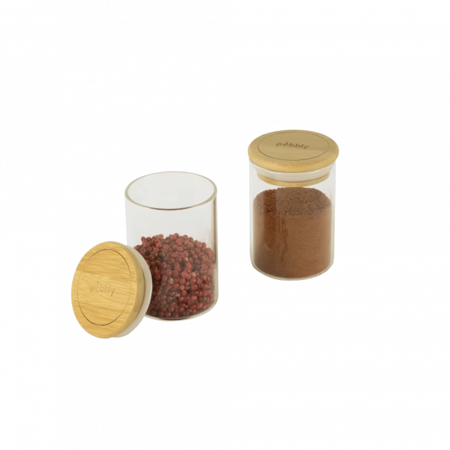 Pour un rangement optimisé en patchwork de couleurs et de saveurs, optez pour le lot 3 pots à épices en verre et bambou Pebbly qui saura vous proposer une solution zéro déchet efficace et esthétique !