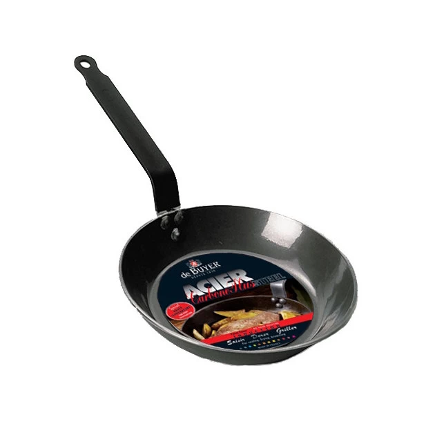 La gamme Carbone plus : La gamme carbone plus est la gamme de référence de De Buyer pour les poêles en tôle acier. Elle assure une répartition de la chaleur sur toute la poele très résistante, elle va sur tous les feux, dont l’induction (contrairement aux poêles tôles bleu)