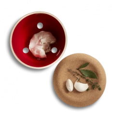Le couvercle en liège sert quant à lui aussi bien de coupelle sur votre plan de travail que de socle pour accueillir d’autres pots de conservation Emile Henry. Associé à un pot à épices, il permet d’avoir à un même endroit tous vos ingrédients secrets qui vous servent à parfumer votre cuisine.