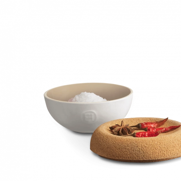 La céramique de ce pot à sel, associée au couvercle en liège, participe à la régulation du taux d’humidité. Cela empêche notamment les grains de sel ou de fleur de sel de s’agglomérer.