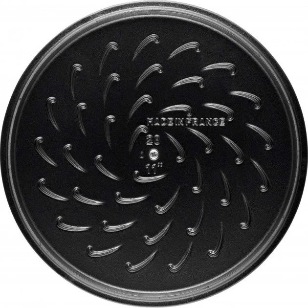 La sauteuse en fonte Chistera Staub mêle parfaitement la polyvalence d’une sauteuse avec la qualité de cuisson d’une cocotte. Que ce soit pour saisir, rôtir ou caraméliser un aliment, vous avez l’assurance d’obtenir un plat plein de saveurs et aux qualités nutritives préservées grâce à la technologie « Chistera Drop-structure ». Cette innovation propre à la marque Staub, désigne l’ajout de petits picots à l’intérieur du couvercle bombé. Cette forme est inspirée des Chistera de la pelote basque. Ces petites virgules creuses réceptionnent et accumulent l’eau qui s’est condensée à l’intérieur de la poêle sauteuse et la redistribuent de manière uniforme sur l’ensemble de la préparation. Contrairement à un plat traditionnel, cette technologie évite que la condensation ne ruissèle uniquement le long des parois de la sauteuse. L’humidité accumulée retombe sous forme de pluie sur l’ensemble des aliments.